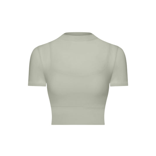 2024 fitness gauze yoga wear short sleeve with padded quick dry runing sports bra One cup wear top