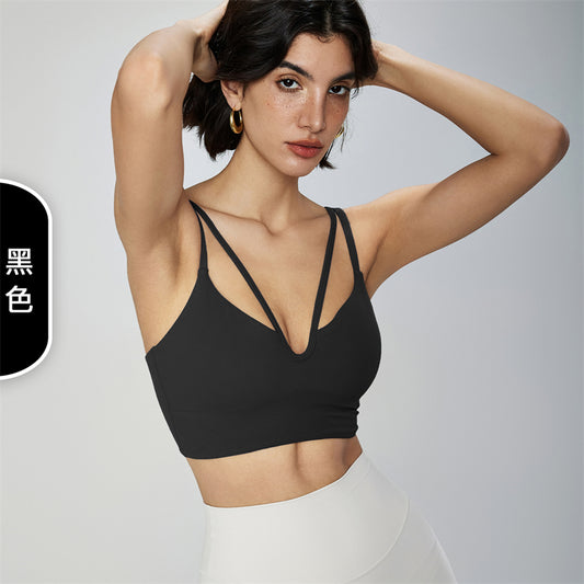 NUF Double Strap Yoga Bra with padded Thin strap Sports underwear Women's Beauty Back V-neck fitness Bra