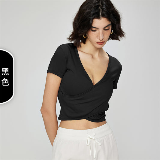 Modal ribbed yoga clothes spring and summer new yoga top short sleeve nude feeling casual T-shirt